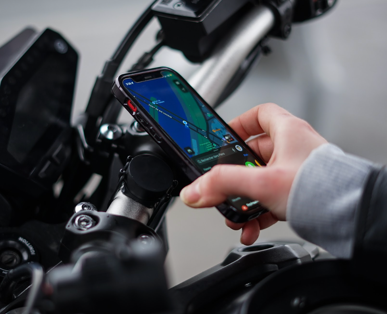 Come seconda soluzione, vi proponiamo di utilizzare il nostro Booster 360° (braccio di estensione) nella versione PRO (bici/moto) o su semimanubri, che vi consente di orientare il telefono più verticalmente e limitare i riflessi. Infatti, poiché la luce si riflette sul piano del telefono, se è piatto, la vista diretta rifletterà il sole/le nuvole, funzionando come uno specchio.