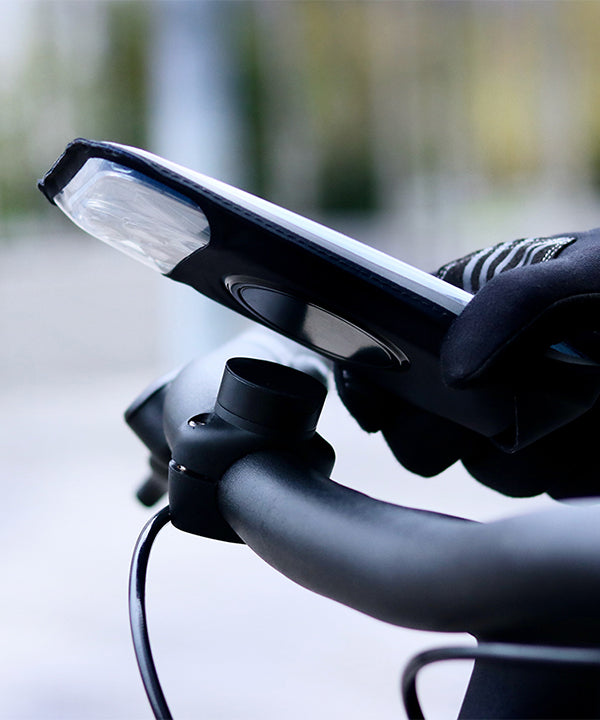 3. Inserisci il tuo telefono nella custodia, aggancialo al supporto (facendo attenzione a centrarlo bene) e sei pronto a partire!
