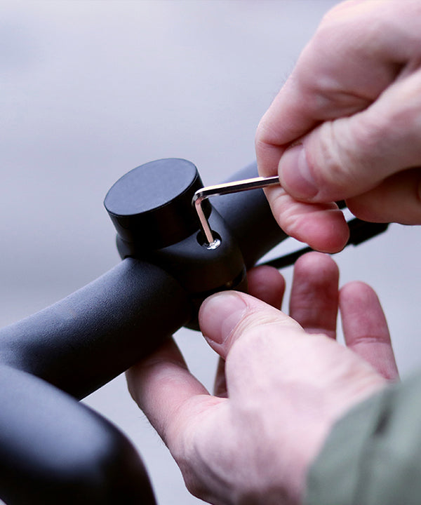 2. Posiziona l'adattatore sul manubrio, poi avvita il supporto sopra, utilizzando la chiave Allen.
